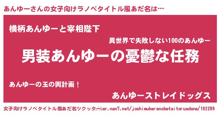 あんゆーさんの女子向けラノベタイトル風あだ名