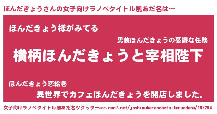 | 男性向けラノベタイトル風あだ名 | 『ほんだきょうに滅ぼされるだけの簡単なお仕事です』 |