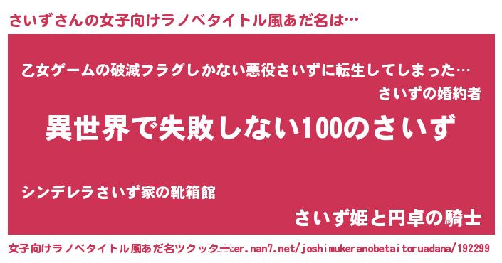 | 意味不明あだ名 | 『永久保存さいず』『ペロリンさいず』 |