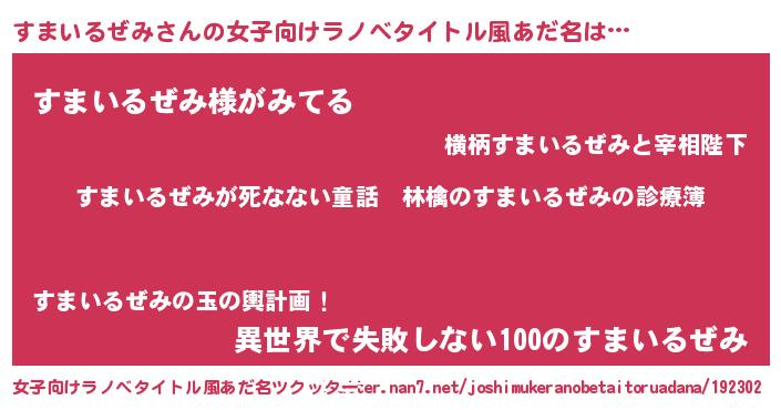 | 男性向けラノベタイトル風あだ名 | 『魔弾の王とすまいるぜみ』 |