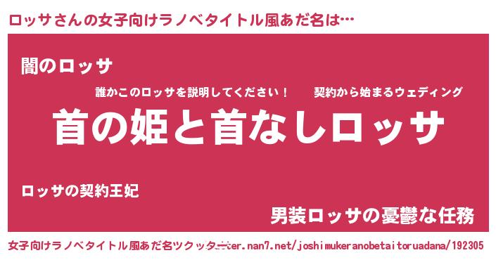 | ヘコむあだ名 | 『ロッにー』『ロッサ(笑)』 |