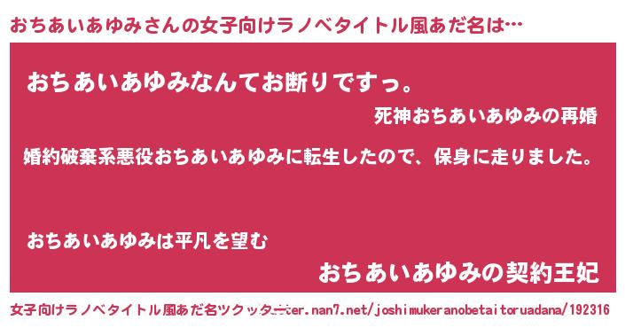 | 男性向けラノベタイトル風あだ名 | 『オチアイアユミスレイヤー』 |