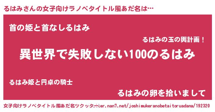 | 胡散臭い通販商品みたいなあだ名 | 『絶対に幸福をもたらす水素水…その名も「るはみ」』 |