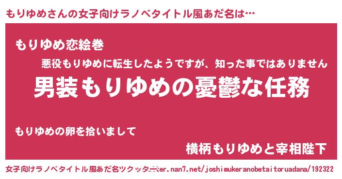 | ヘコむあだ名 | 『もりっ子』『もりゆめ(苦笑)』 |