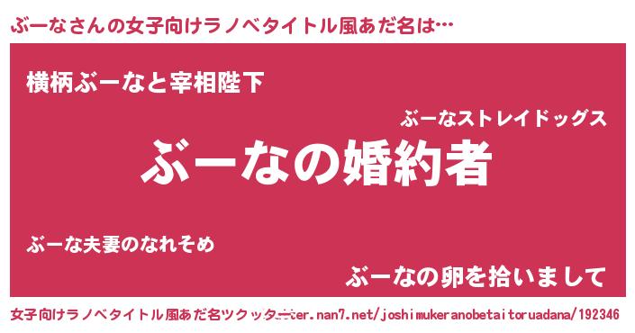 | 胡散臭い通販商品みたいなあだ名 | 『運命の人と巡り会える高級そうな壺…その名も「ぶーな」』 |
