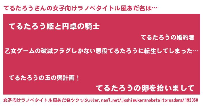 | 男性向けラノベタイトル風あだ名 | 『魔弾の王とてるたろう』 |