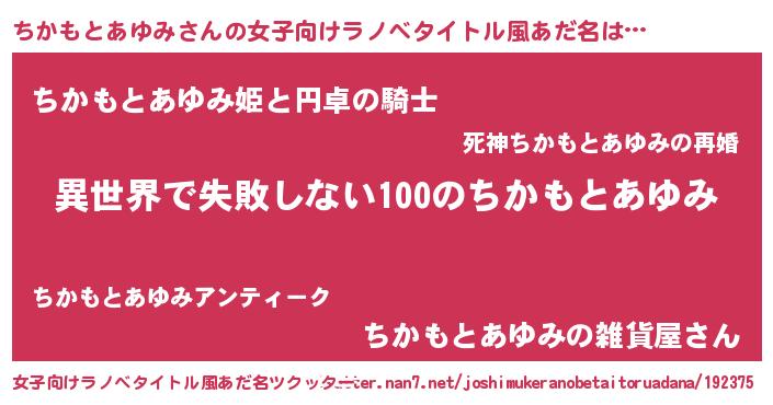 | 胡散臭い通販商品みたいなあだ名 | 『絶対に幸福をもたらす健康食品…その名も「ちかもとあゆみ」』 |