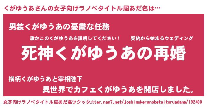 | 男性向けラノベタイトル風あだ名 | 『ノーゲーム・ノークガユウア』 |