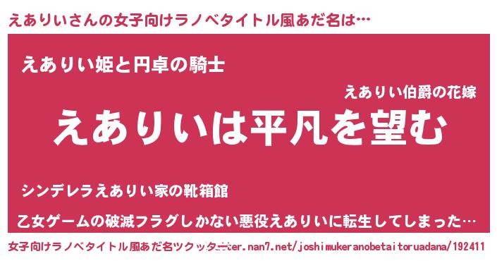 | 男性向けラノベタイトル風あだ名 | 『ダンジョンにえありいを求めるのは間違っているだろうか』 |