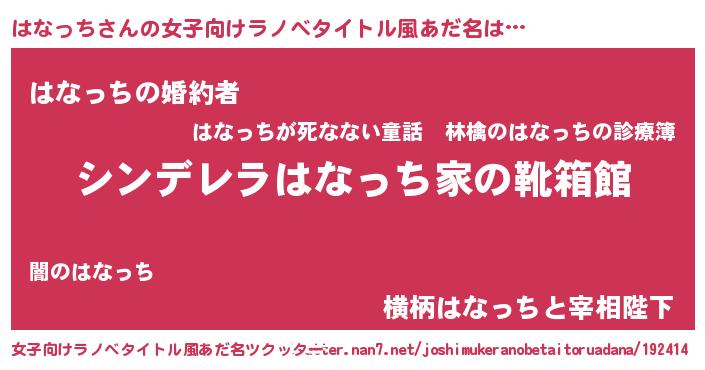 | 男性向けラノベタイトル風あだ名 | 『緋弾のハナッチ』『魔弾の王とはなっち』 |