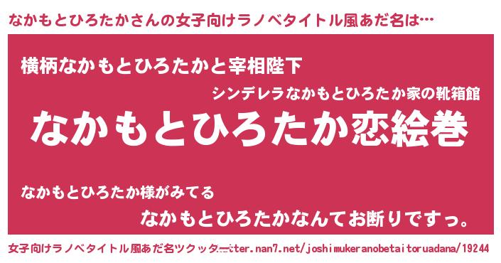 | 男性向けラノベタイトル風あだ名 | 『ノーゲーム・ノーナカモトヒロタカ』 |