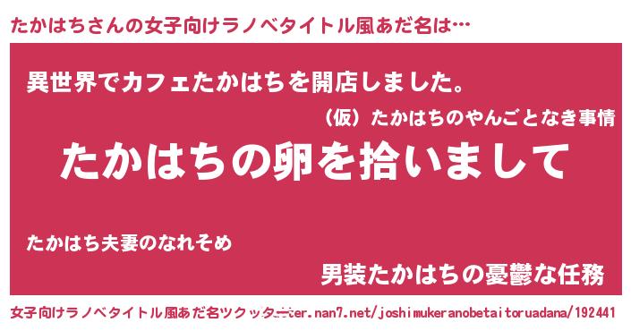 | 胡散臭い通販商品みたいなあだ名 | 『伝統あるサプリメント…その名も「たかはち」』 |