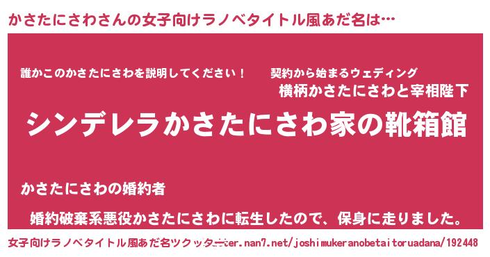 | 男性向けラノベタイトル風あだ名 | 『冴えないかさたにさわの育てかた』 |