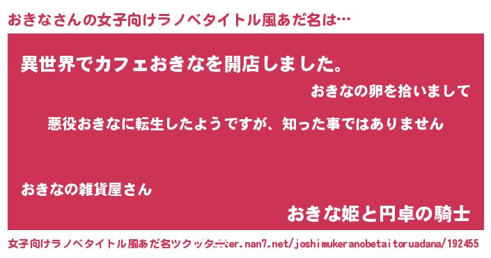 | 意味不明あだ名 | 『住所不定無職おきな(47歳)』 |