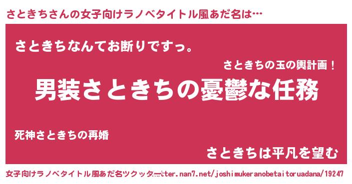 | 男性向けラノベタイトル風あだ名 | 『うちのさときちが世界を掌握している!』 |