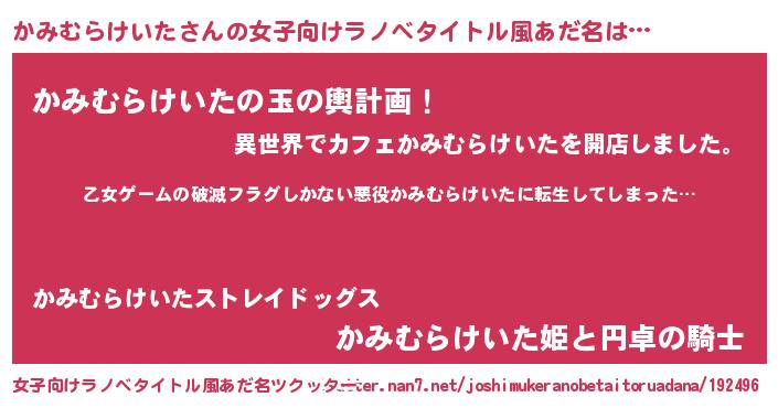 | 意味不明あだ名 | 『住所不定無職かみむらけいた(91歳)』 |