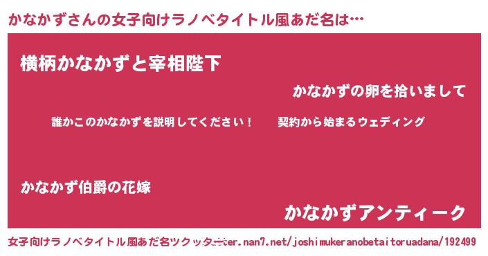| 男性向けラノベタイトル風あだ名 | 『カナカズアートオンライン』 |