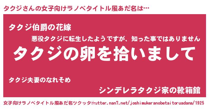 | ピコ太郎風あだ名 | 『タク次郎』『ピタ五郎』『タタ太郎』 |