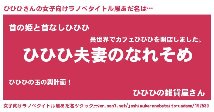 | 男性向けラノベタイトル風あだ名 | 『おまえをオタクにしてやるから、俺をひひひにしてくれ! 』 |