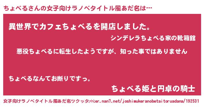 | 伝説のあだ名 | 『古文書に記された勇者ちょべる』 |