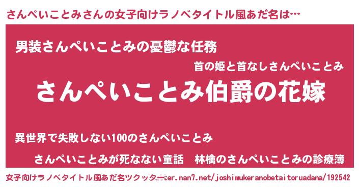 | 男性向けラノベタイトル風あだ名 | 『うちの娘の為ならば、俺はもしかしたらさんぺいことみも倒せるかもしれない。』 |