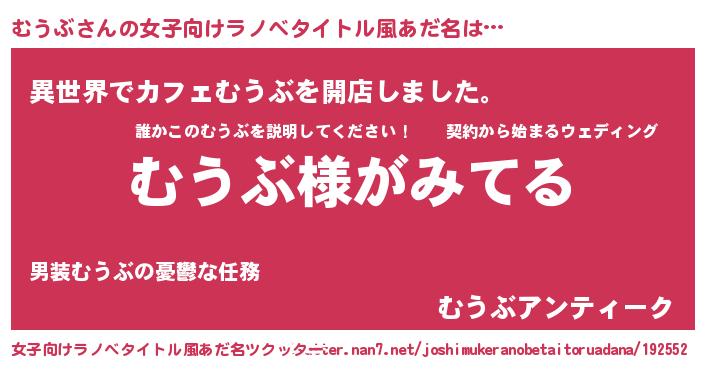 | 意味不明あだ名 | 『とにかく怪しいむうぶ』『自称むうぶ』 |