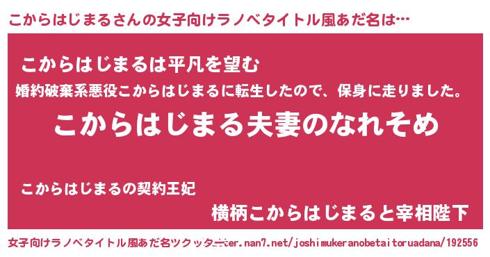 | 男性向けラノベタイトル風あだ名 | 『おまえをオタクにしてやるから、俺をこからはじまるにしてくれ! 』 |
