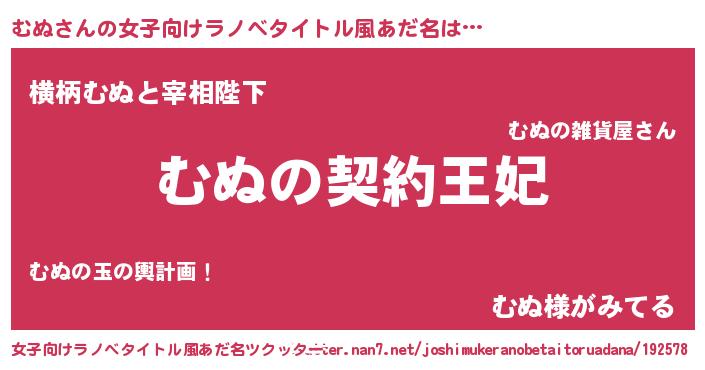 | 男性向けラノベタイトル風あだ名 | 『誰もが恐れるあのむぬが、ぼくの専属メイドになるようです。』 |