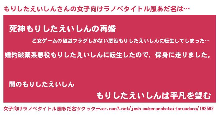 | 男性向けラノベタイトル風あだ名 | 『モリシタエイシンスレイヤー』 |