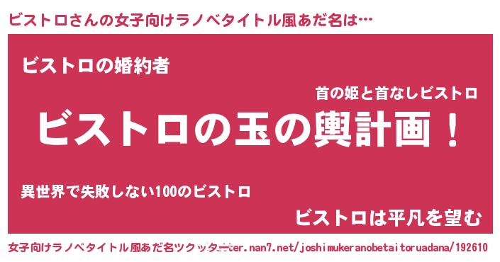 | 胡散臭い通販商品みたいなあだ名 | 『運命の人と巡り会える高級そうな皿…その名も「ビストロ」』 |