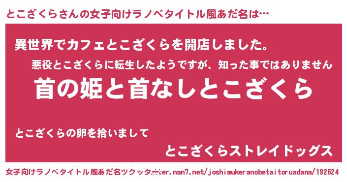 | 男性向けラノベタイトル風あだ名 | 『はたらくとこざくらさま!』 |