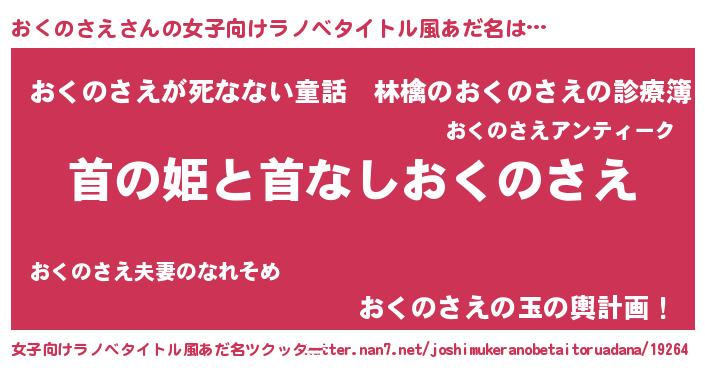 | 男性向けラノベタイトル風あだ名 | 『はたらくおくのさえさま!』 |