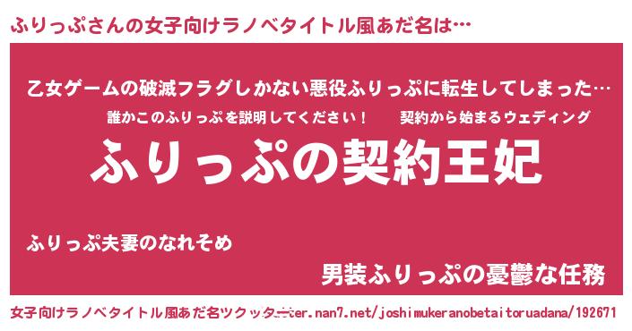 | 男性向けラノベタイトル風あだ名 | 『ふりっぷという概念が存在しない退屈な世界 』 |