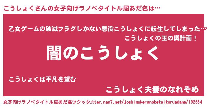| 男性向けラノベタイトル風あだ名 | 『Re:こうしょくから始める異世界生活』 |