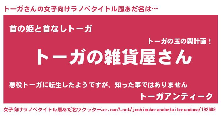 | 意味不明あだ名 | 『トーガフォーエバー』『自称トーガ』 |