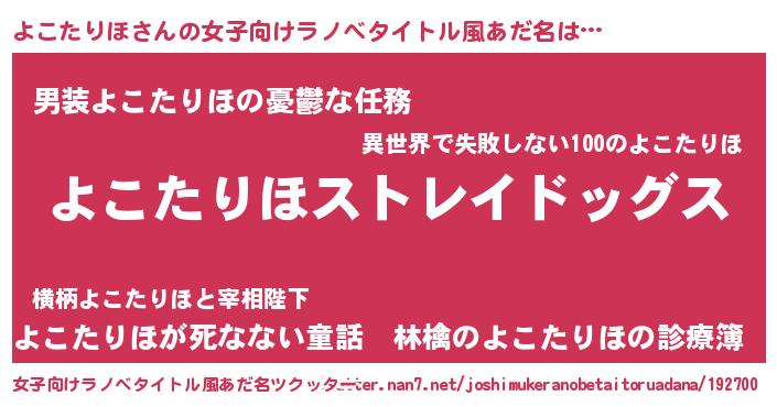 | 伝説のあだ名 | 『古文書に記された勇者よこたりほ』 |