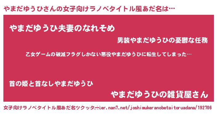 | 男性向けラノベタイトル風あだ名 | 『魔弾の王とやまだゆうひ』 |
