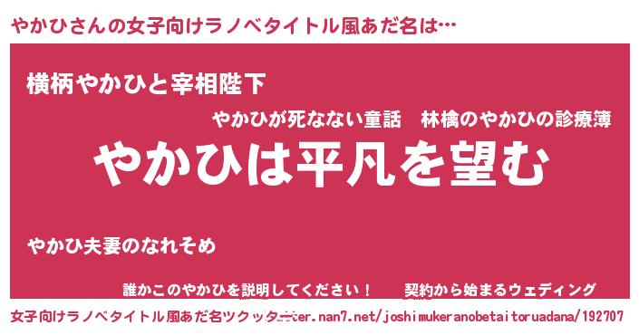 | ポケモン風あだ名 | 『ヒヤカヒ』『ヤカゴンZ』『ヤーカイ』 |