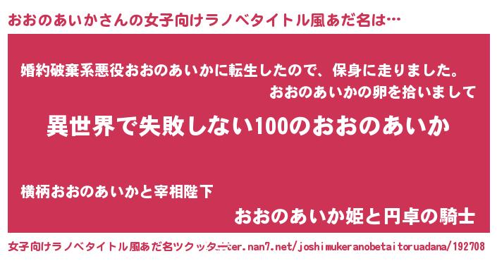 | 胡散臭い通販商品みたいなあだ名 | 『絶対に幸福をもたらす水素水…その名も「おおのあいか」』 |