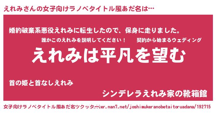 | 男性向けラノベタイトル風あだ名 | 『ダンジョンにえれみを求めるのは間違っているだろうか』 |