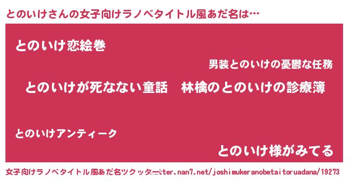 | ヒーロー風カッコイイあだ名 | 『仮面トノダー』『愛の使者とのいけ』 |