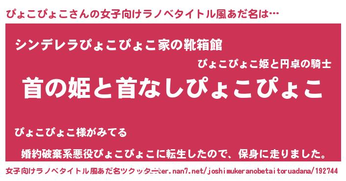 | 男性向けラノベタイトル風あだ名 | 『はたらくぴょこぴょこさま!』 |