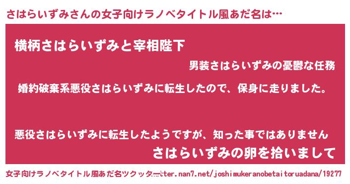 | 男性向けラノベタイトル風あだ名 | 『転生したらさはらいずみだった件』 |