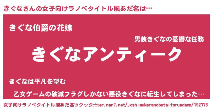 | 意味不明あだ名 | 『自称きぐな』『きぐなフォーエバー』 |