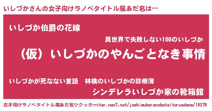 | 胡散臭い通販商品みたいなあだ名 | 『必ず成功する霊験あらたかなお札…その名も「いしづか」』 |
