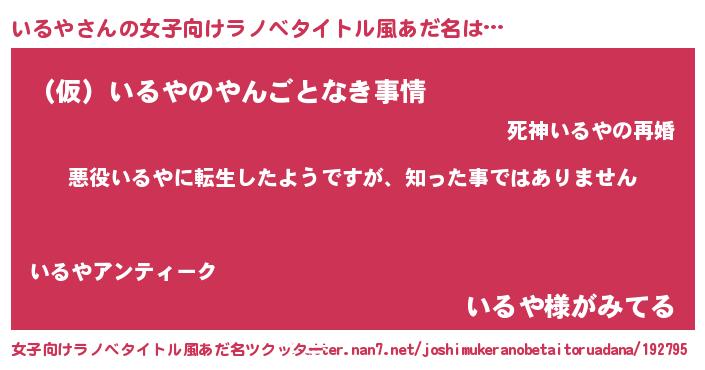 | 胡散臭い通販商品みたいなあだ名 | 『あなたにだけ特別に提供する世界で10本だけ現存している希少なブランデー…その名も「いるや」』 |