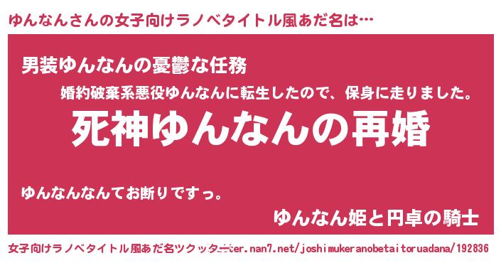 | 男性向けラノベタイトル風あだ名 | 『ノーゲーム・ノーユンナン』 |