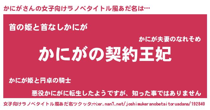 | 男性向けラノベタイトル風あだ名 | 『かにがという概念が存在しない退屈な世界 』 |
