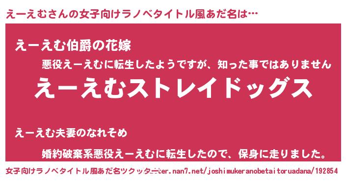 | 男性向けラノベタイトル風あだ名 | 『Re:えーえむから始める異世界生活』 |