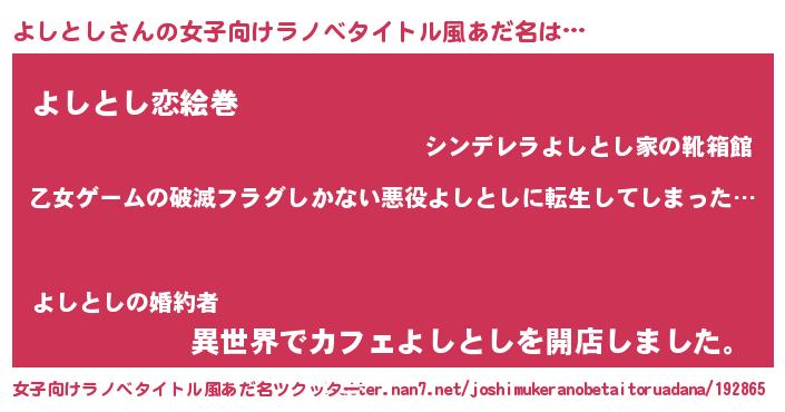 | 意味不明あだ名 | 『住所不定無職よしとし(13歳)』 |